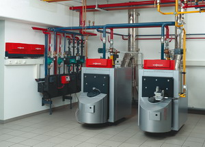 Heizanlage mit Ölbetrieb links und Gasbetrieb rechts. Vorrangig wird hier auf den derzeit günstigen Brennstoff umgeschaltet.