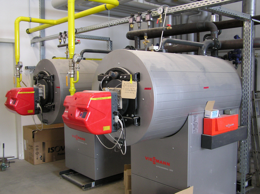 Die Inbetriebnahme der modulierenden Gasgebläsebrenner ist erfolgt und einige Teile der Gebäude werden nun bereits von der neuen Heizzentrale mit Wärme versorgt.