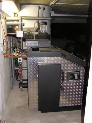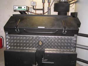 38KW Scheitholzanlage kombiniert mit einem Öl-Kessel und einer 25m² Solaranlage. Die Umschaltung auf den jeweiligen Brennstoff geschieht automatisch.