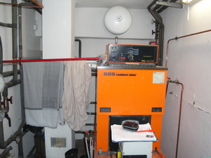 Hier wurde der bestehende Heizölkessel kombiniert mit einem 30KW Scheitholzkessel der Firma Künzel. Eine 20m² Solarkollektoranlage wird hier auch noch nachgerüstet. Puffervolumen: 2000 Liter