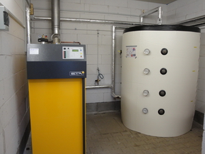 Scheitholzanlage mit insgesamt 3800 Liter Pufferspeicher.